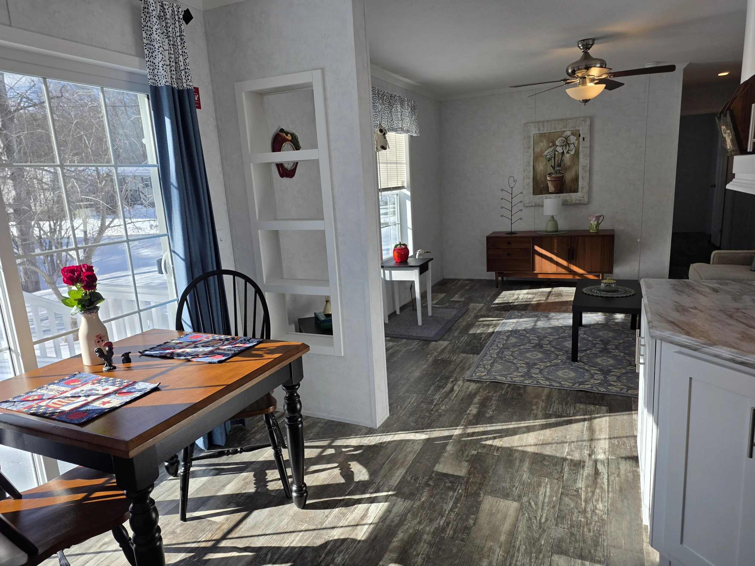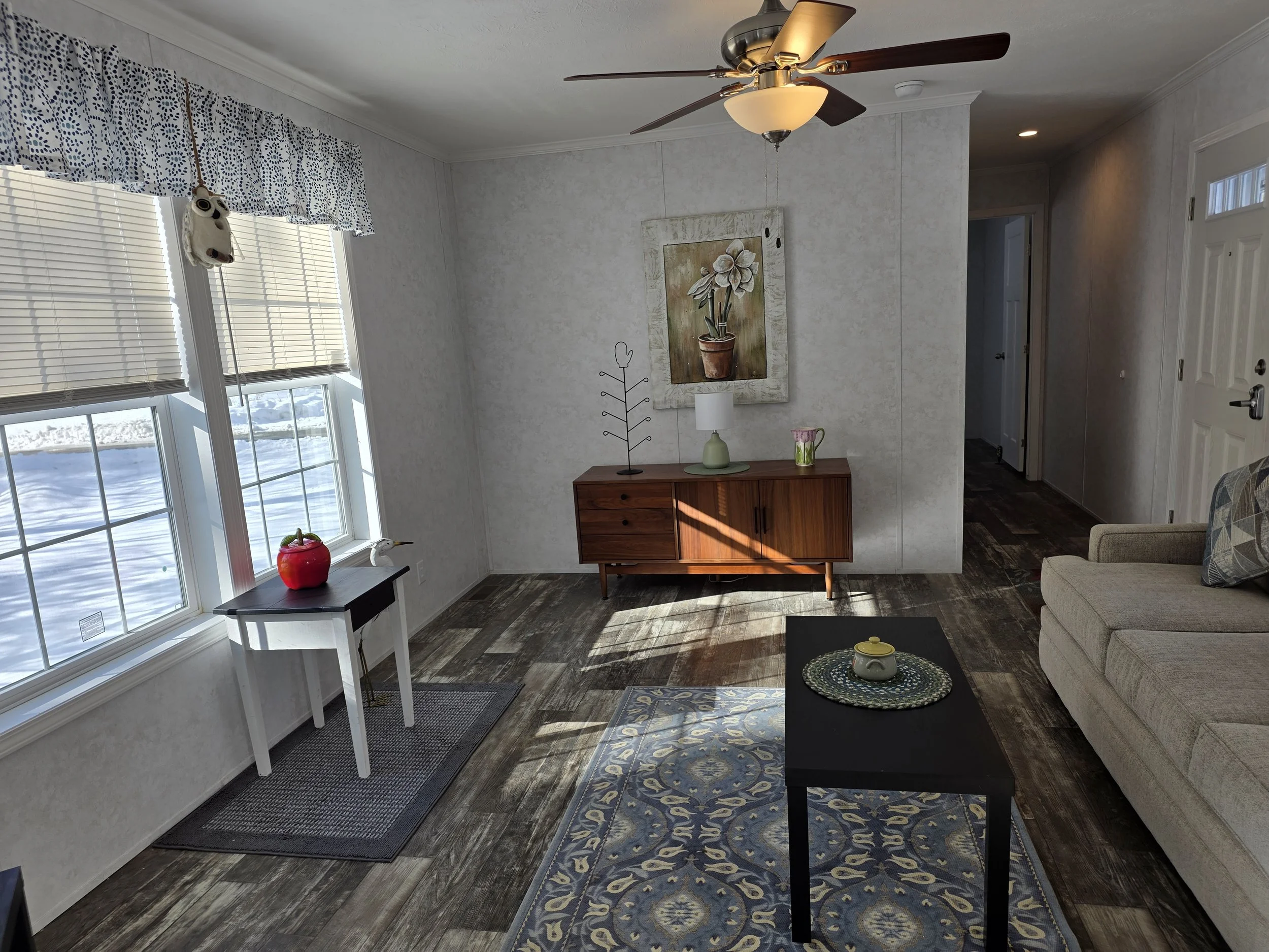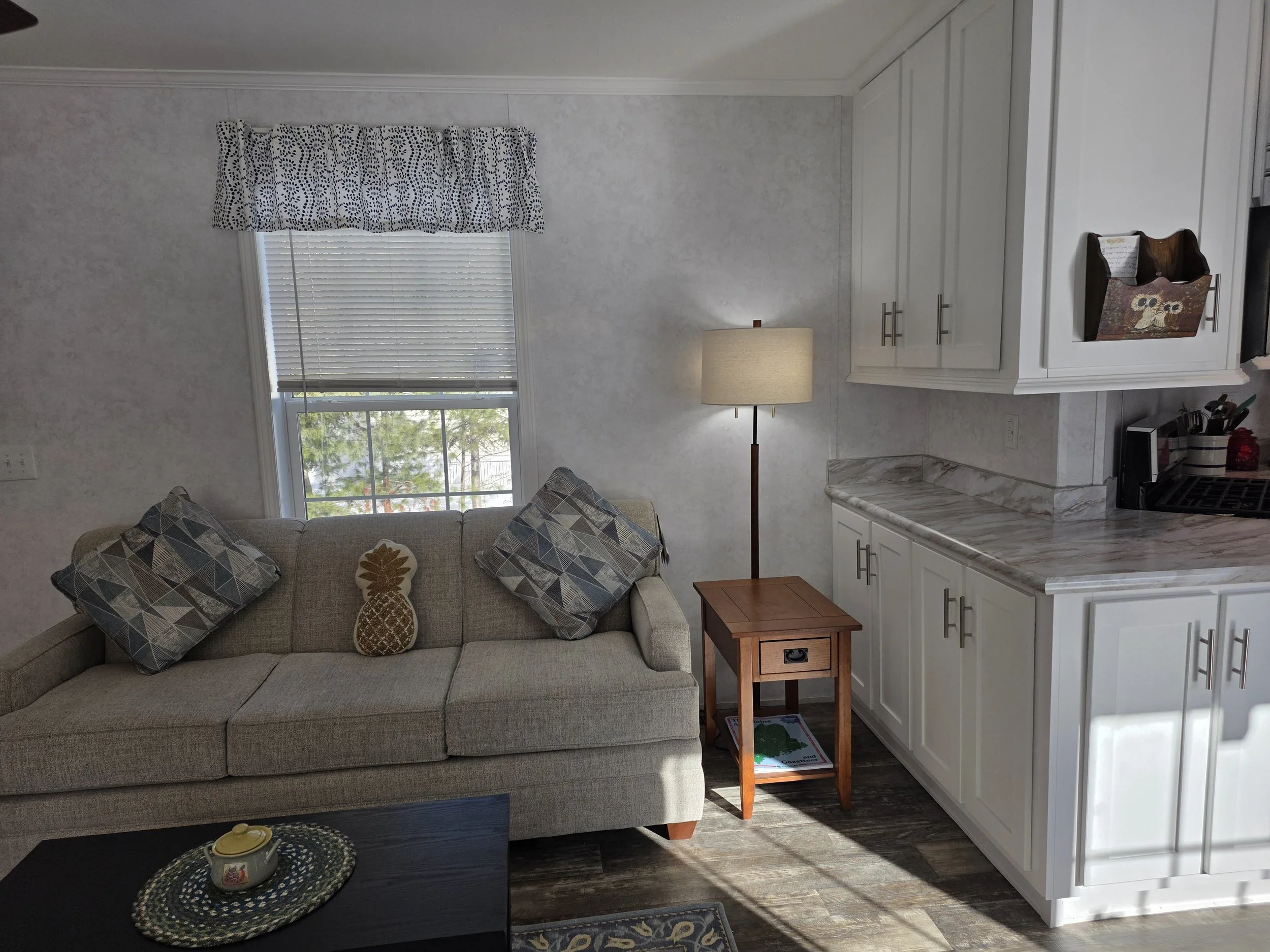 This 2025 Redman has been specifically designed for a retired single person or couple. This 2 bedroom, 2 bath home sits on a roomy lot with a large side yard featuring a pretty apple tree. A gravel pad has been prepared for a one car garage and there is plenty of room for a shed. The spectacular kitchen has lots of storage & counter space. The dining area features a sliding glass door leading to a nice vinyl 8’ x 8’ rear deck. This house is vinyl sided and both decks are built from composite materials making the place maintenance free. The master bedroom suite has a private bathroom with a large walk-in shower and both toilets are handicap height. This is the last new home available in the park. Price $149,900 Call Loretta at 207-754-6888 or Doug at 207-754-1930.
